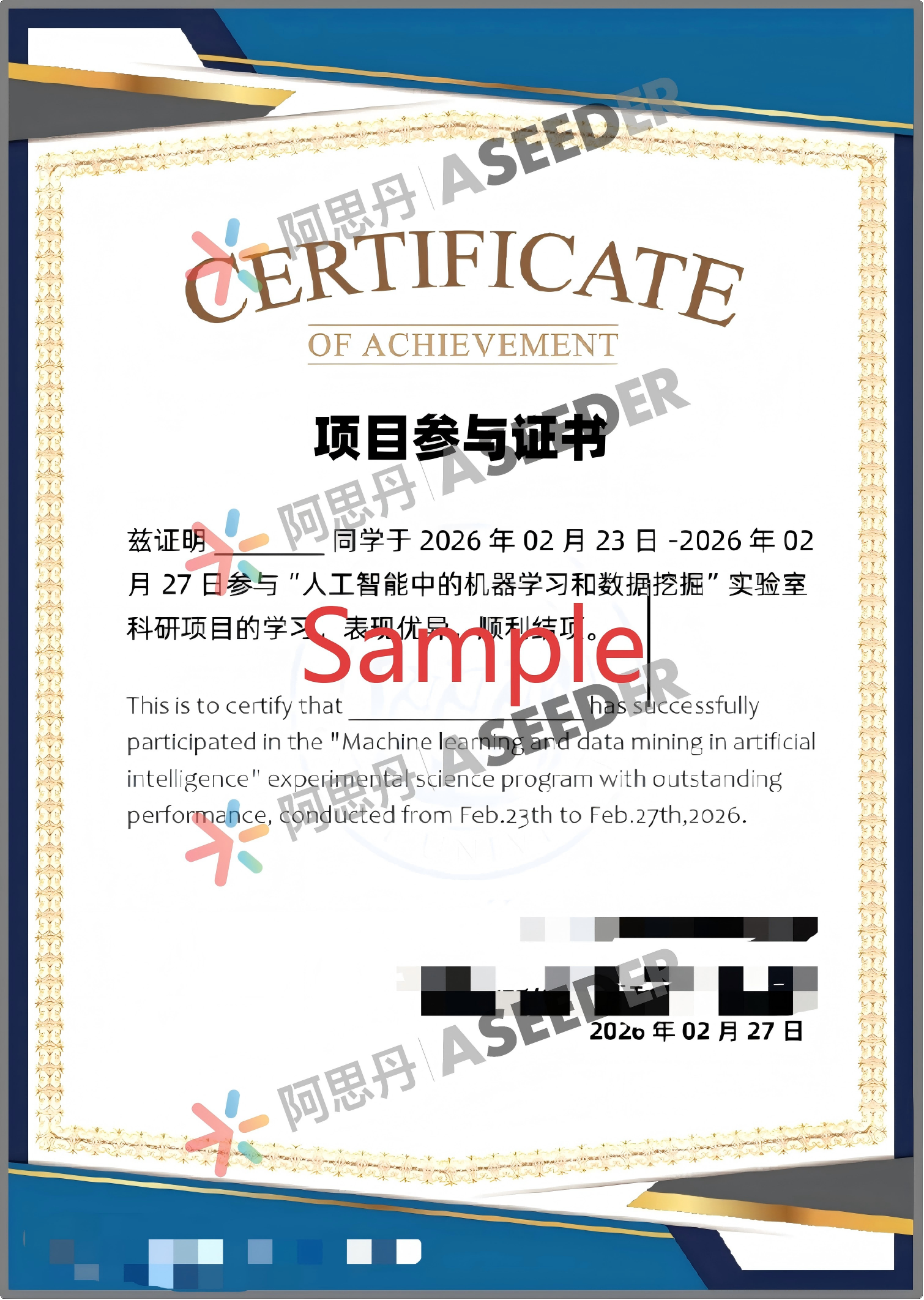 *证书sample仅为参考,具体证书内容可能会根据当期课程内容微调,以实际发放为准