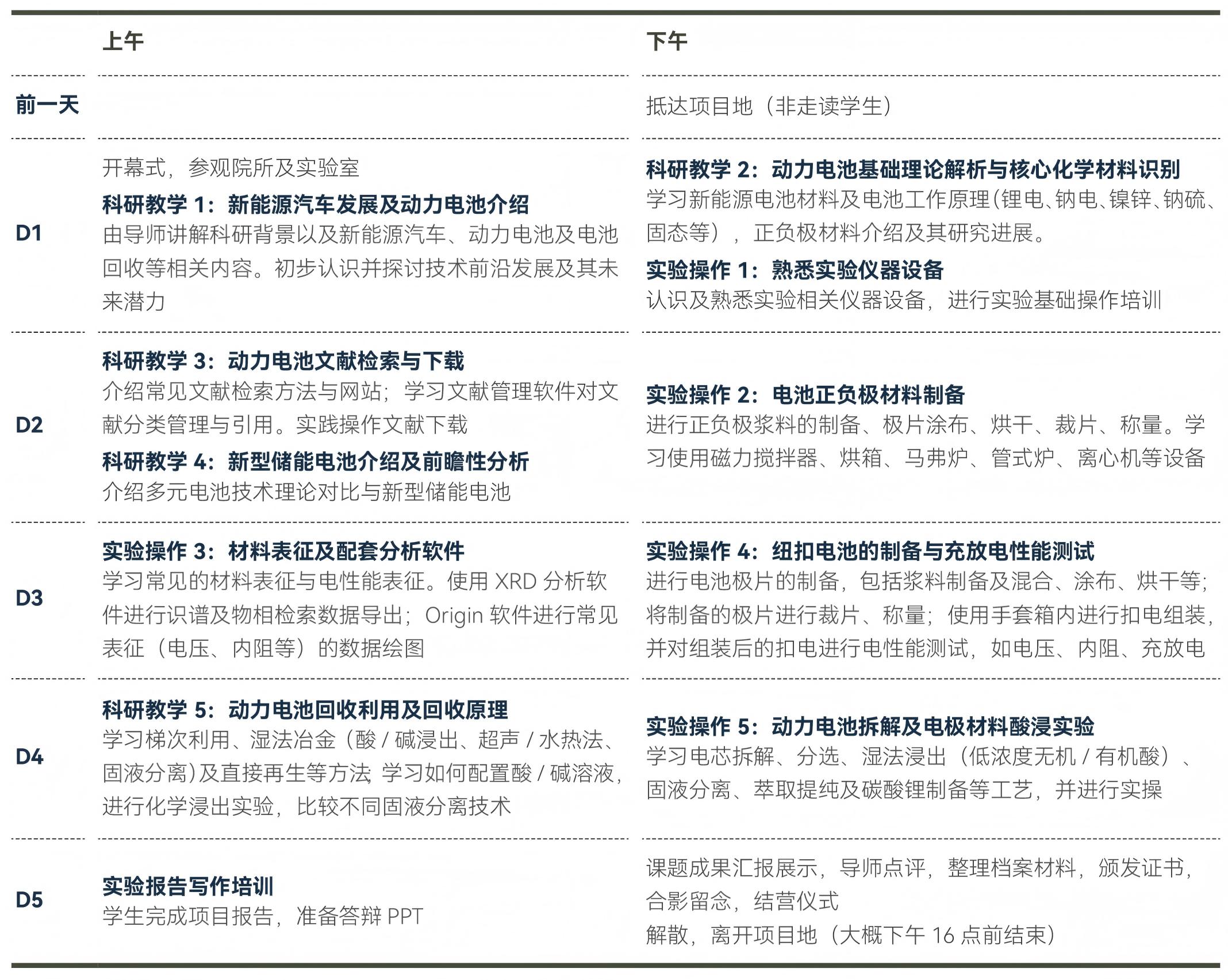 进行电池制备、充放电测试、电池拆解回收及利用等实验