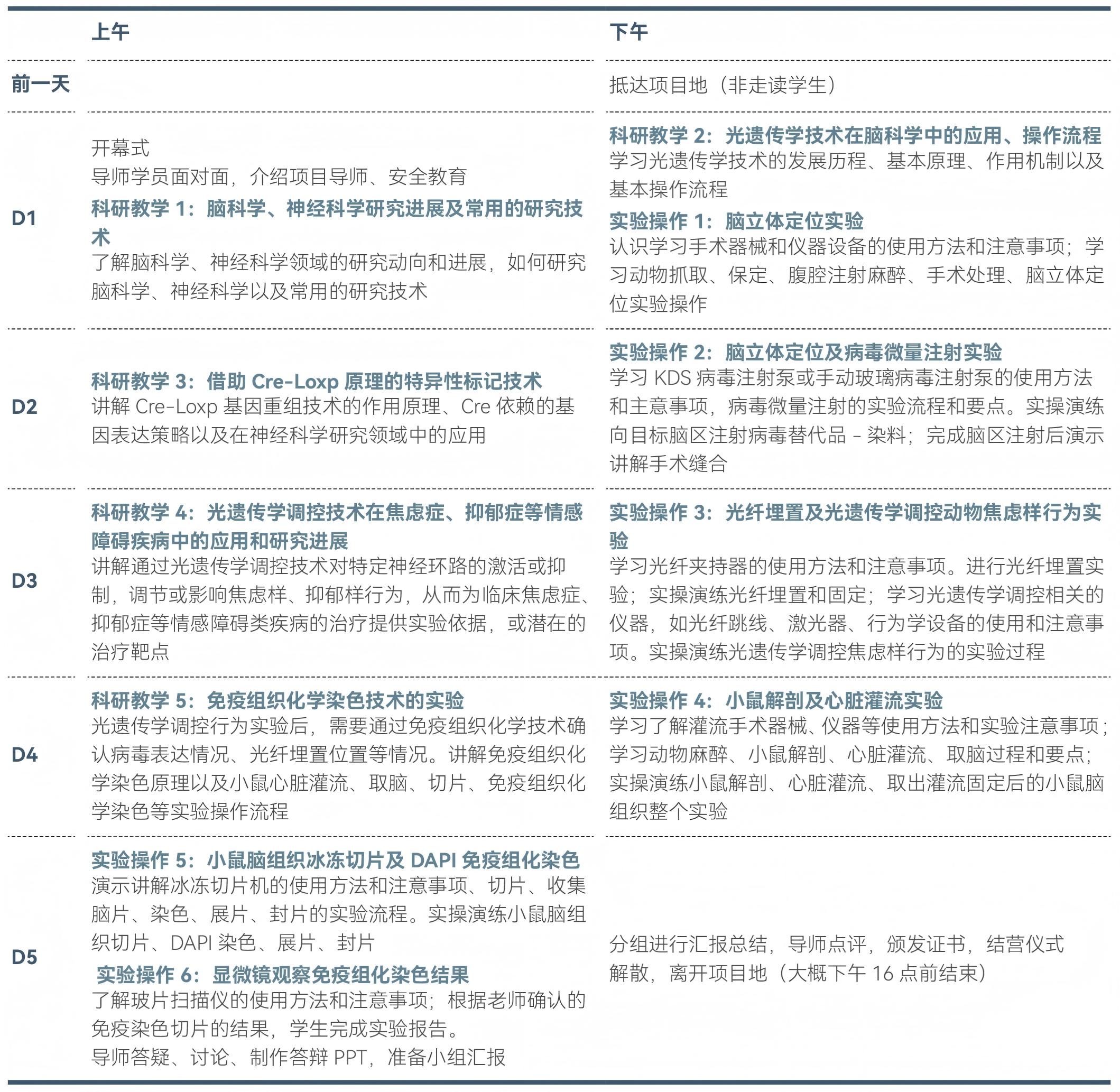 本项目联合国家级科研院所脑科学领域导师,带领学生深度了解脑科学前沿知识、抑郁症等常见精神障碍的发病机制,同时通