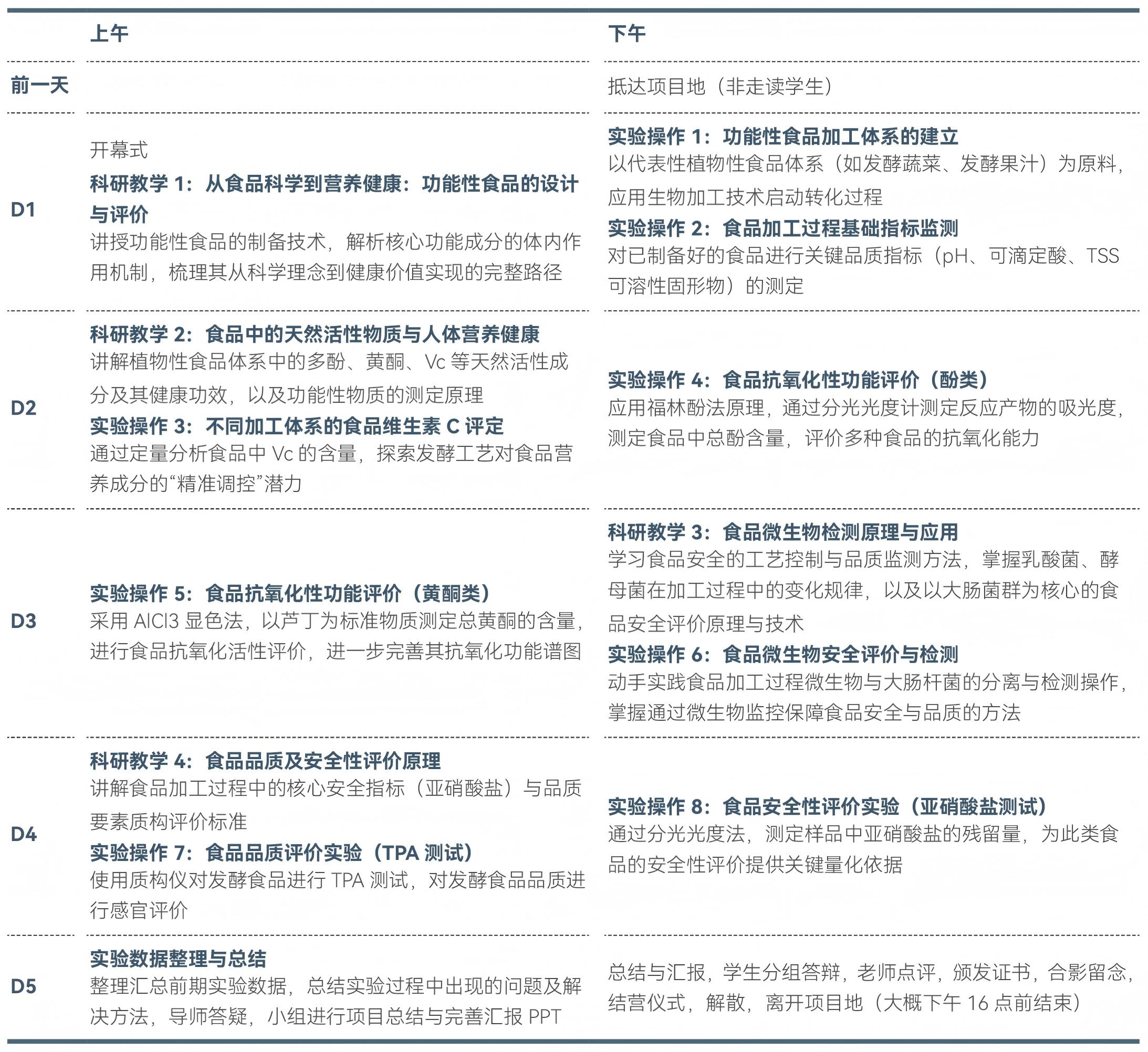 本项目特邀国家级食品科学领域专家指导,聚焦于功能性食品研究的前沿,通过蔬菜与果汁这两大类典型植物基质为载体,将全面学习功能性食品的设计理念,掌握食品核心营养成分和安全性指标的测定原理与方法,亲历功能性食品研发与评价的全过程,为今后在营养健康、食品研发等相关领域的深造与发展奠定坚实基础。