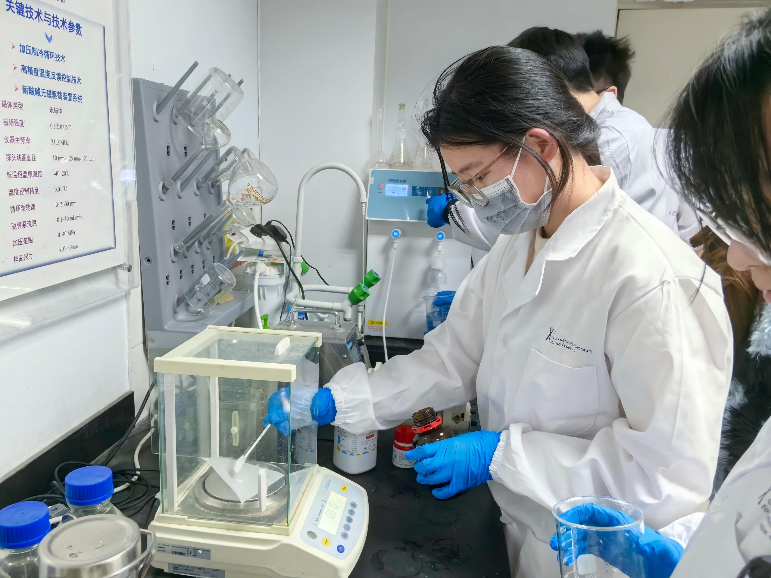 进行重金属吸附试验、核磁共振等实验操作
