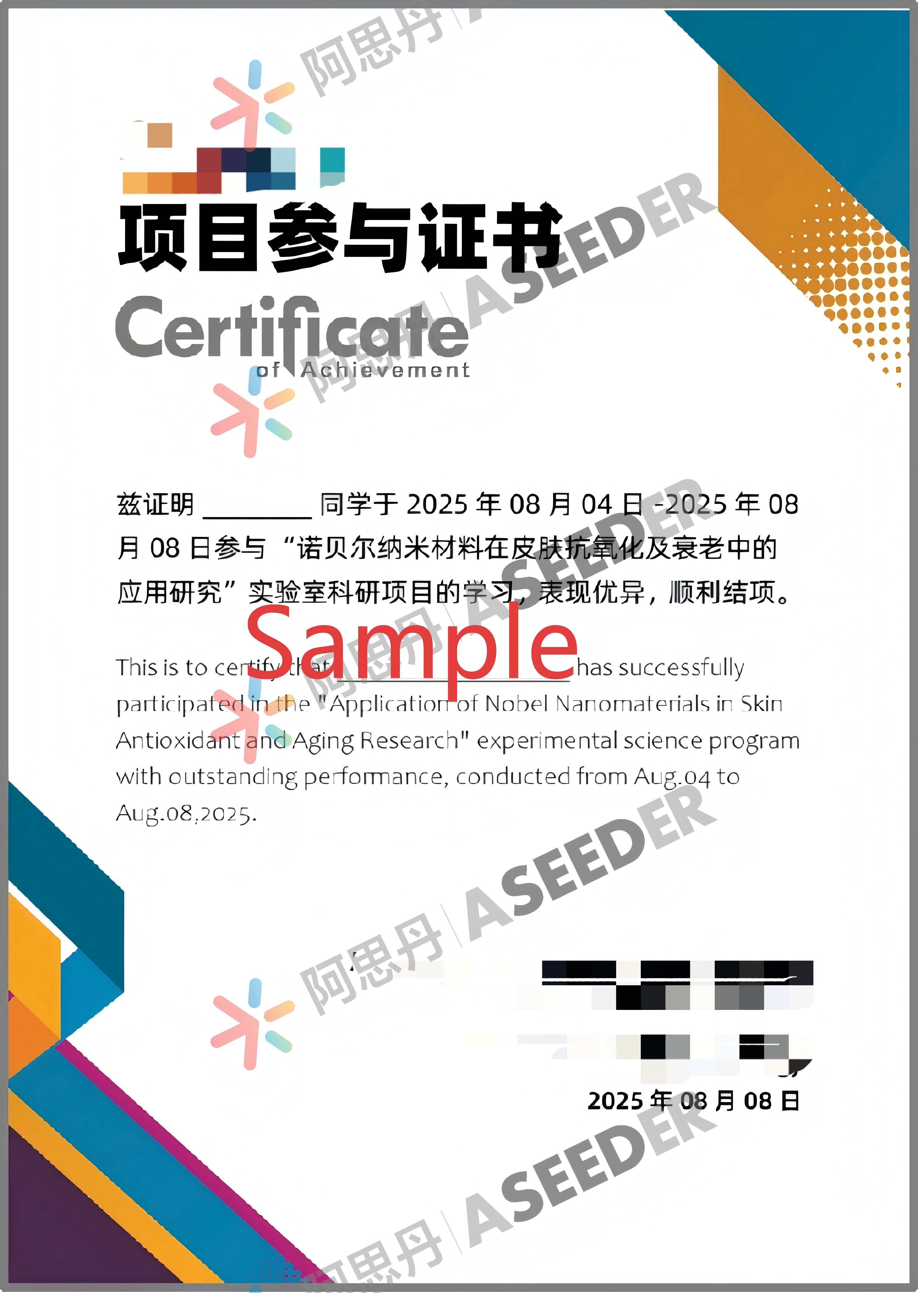 *证书sample仅为参考,具体证书内容可能会根据当期课程内容微调,以实际发放为准