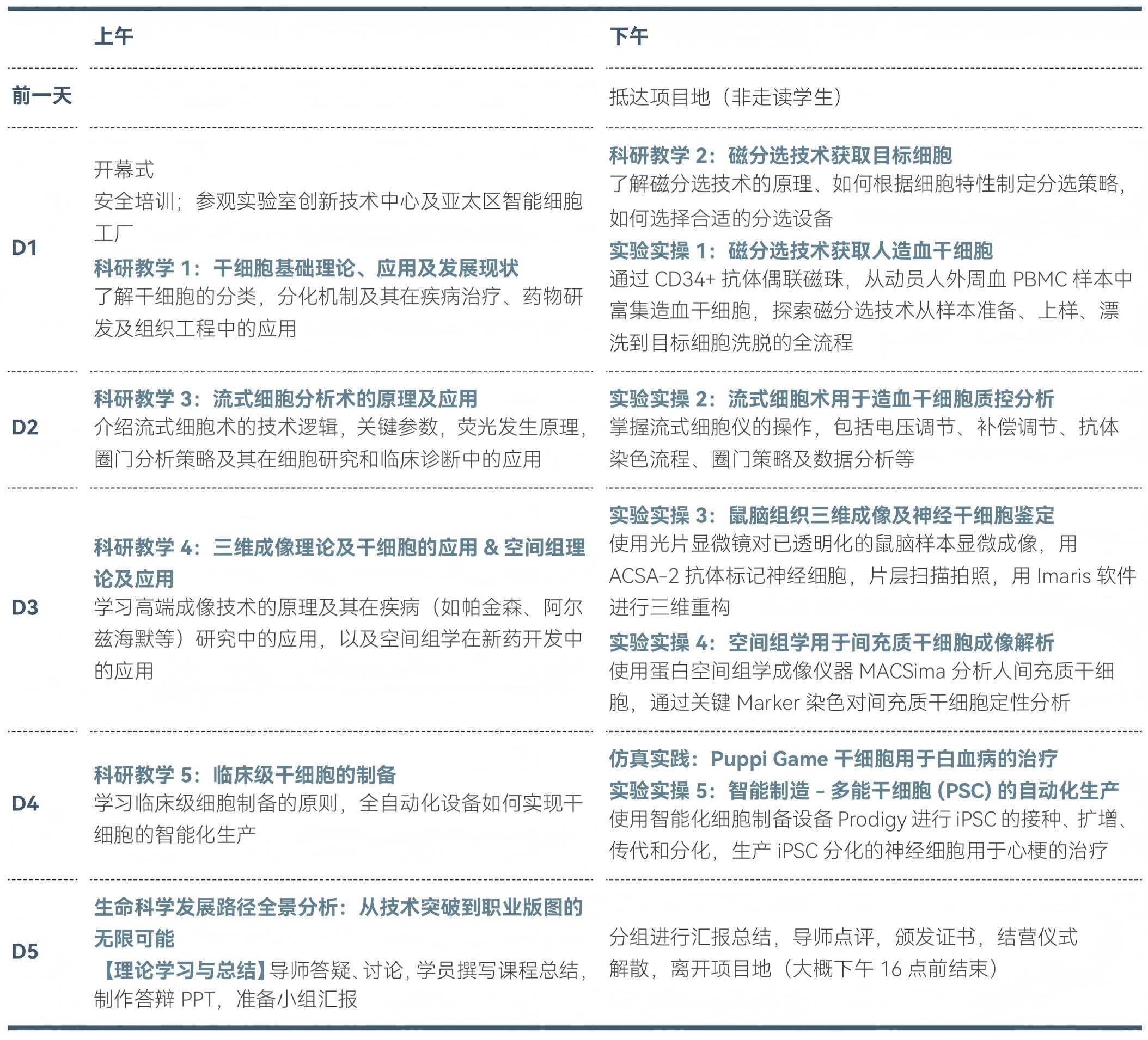 本课程联合德国知名生物科技企业科研人员,带领学生系统学习干细胞疗法理论知识,并通过大量的干细胞前沿实验比如磁分选技术、流式细胞术、三维成像、空间组学等,深度理解干细胞疗法在医学中的应用。
