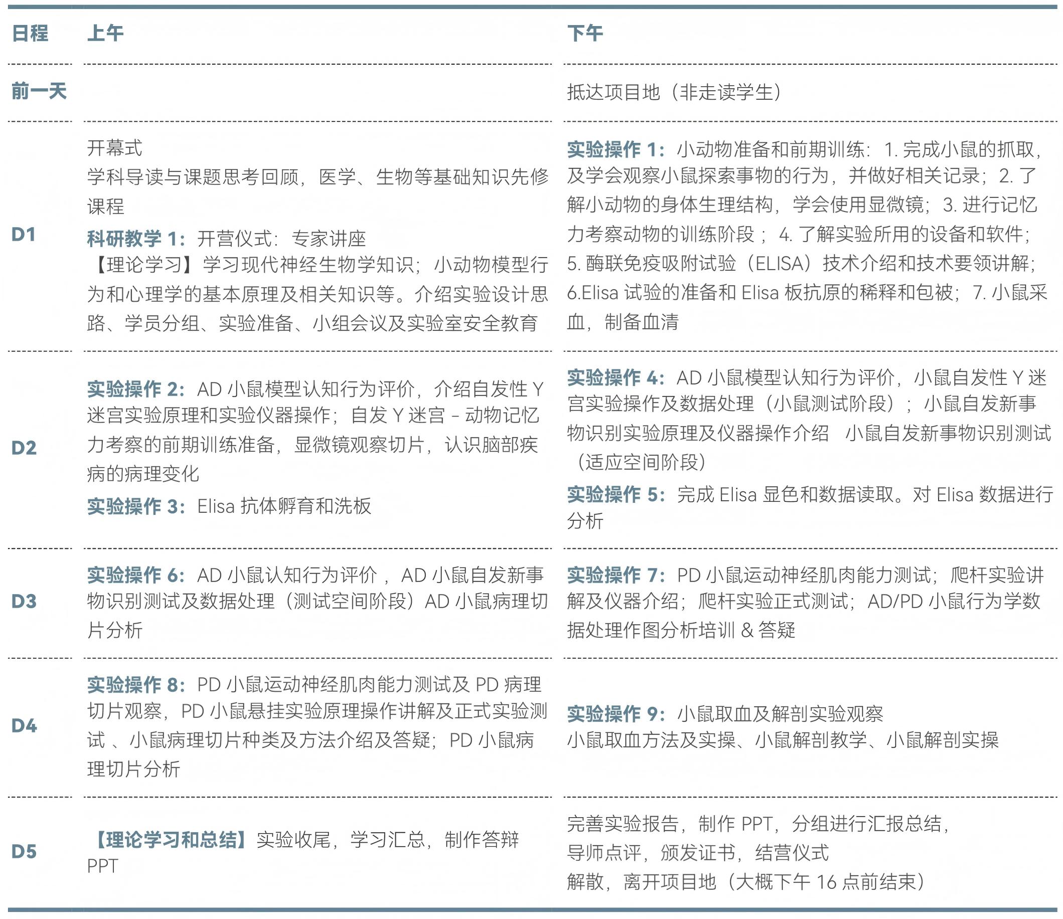 本项目特邀国家级科研院所高校神经-行为学领域的一线科学家,带领学生学习神经生物学的基础知识,依托专业动物模型和先进的仪器设备,进行深入探究,从神经生物学、生理学、行为学等角度深刻理解即将到来的老龄化社会问题。